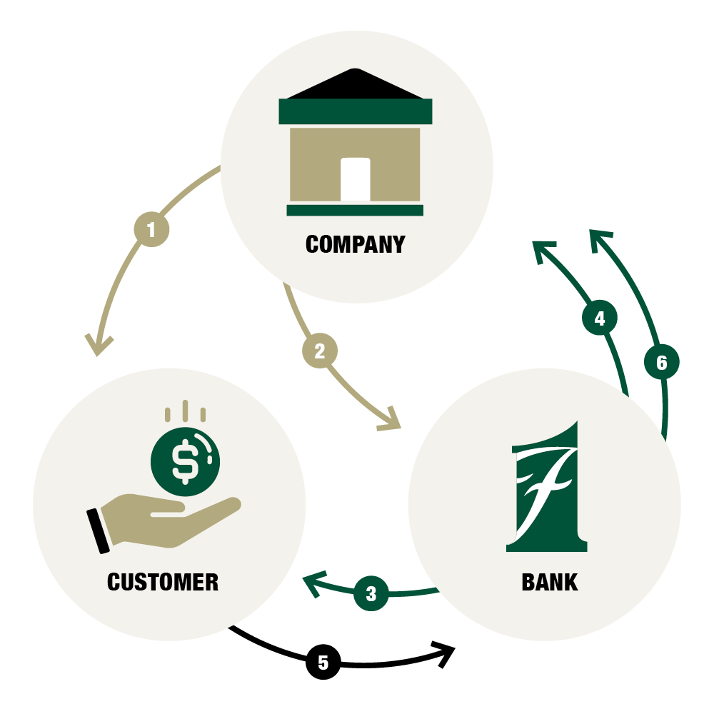 5. Collection: First Bank & Trust Takes over the responsibility of collecting payment from your customer.