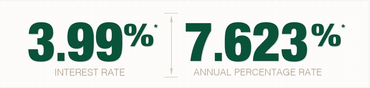 *Rates are subject to change without notice and are based on a construction loan amount of $500,000. Loan must be for residential primary and secondary properties only and does not include remodels or refinances. Minimum credit score of 680 to qualify. Conforming loan amounts only and subject to credit approval. Property insurance required. Other terms and conditions may apply. The annual percentage rate of 7.623% is based on a $500,000 loan with 11 monthly interest-only payments of $1,724 and a final balloon payment of $501,724, assuming the full $500,000 is drawn. Total outstanding loan balance is due at loan maturity. Consult your tax advisor on the deductibility of interest. Contact bank for additional details.